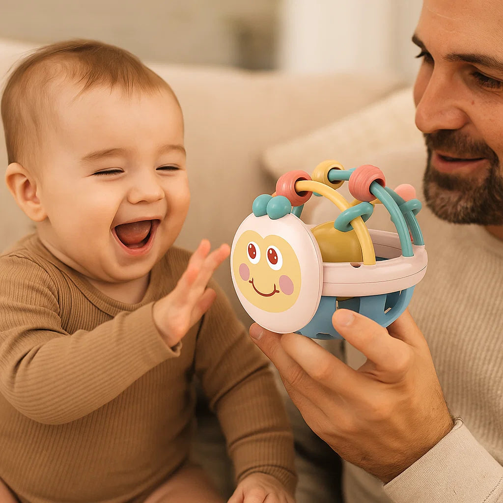 The bite-friendly play ball is more than just a toy - it helps your baby to relieve teething pain in a natural way. The soft, textured elements allow your child to chew on it safely while developing fine motor skills and sensory perception. The bright colours, movable rings and exciting grasping options make the ball a fun companion for little hands and growing teeth. Perfect for curious babies who want to explore everything!