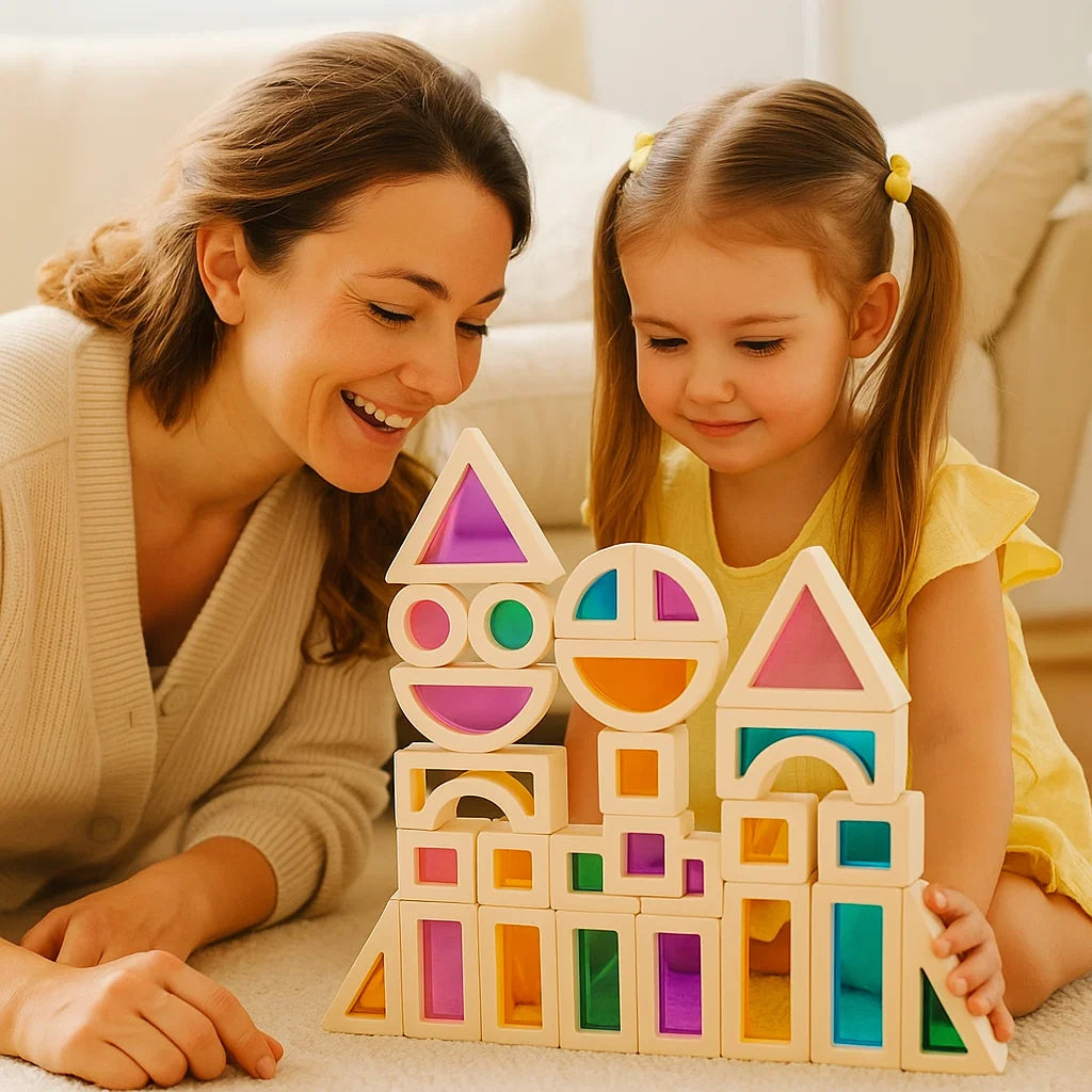 "The wooden building blocks are not only beautifully designed, but also encourage my children's creativity in a playful way. I particularly like the fact that the transparent colours awaken an interest in shapes and light reflections."