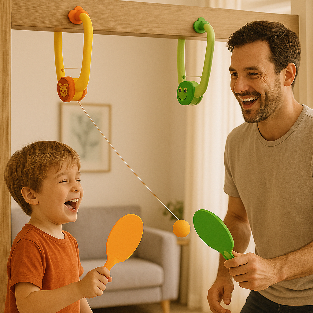 Das Türrahmen Ping Pong Spielset ist die perfekte Möglichkeit, eine klassische Spielidee mit einem praktischen und platzsparenden Design zu kombinieren. Es lässt sich einfach am Türrahmen befestigen und ermöglicht es, jederzeit und überall ein spannendes Spiel zu genießen – egal ob drinnen oder draußen. Ideal für Familien, die aktiv bleiben und gleichzeitig Spaß haben wollen.