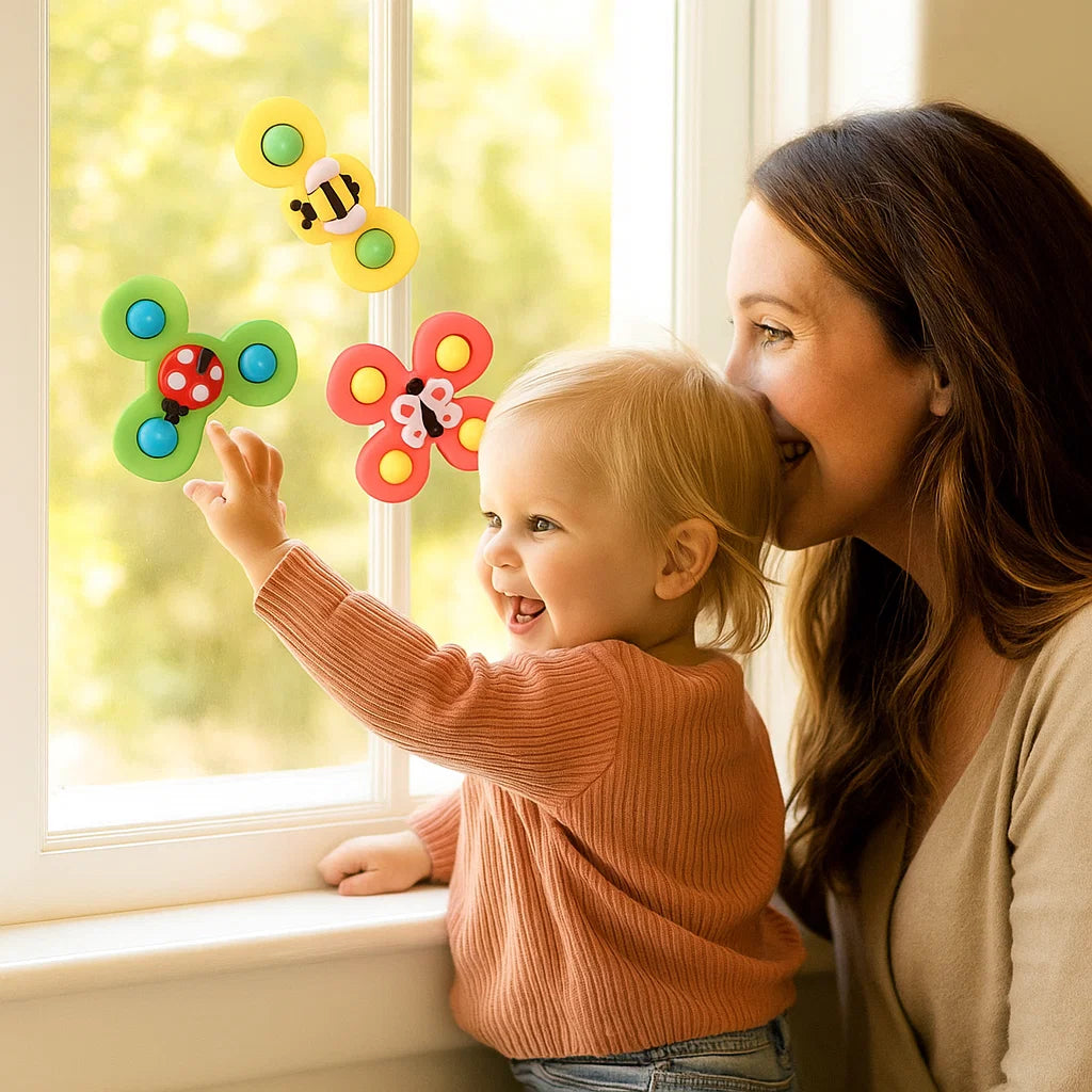 These toys are perfect for little hands to explore and spin. The colors are bright and instantly attract my daughter’s attention.