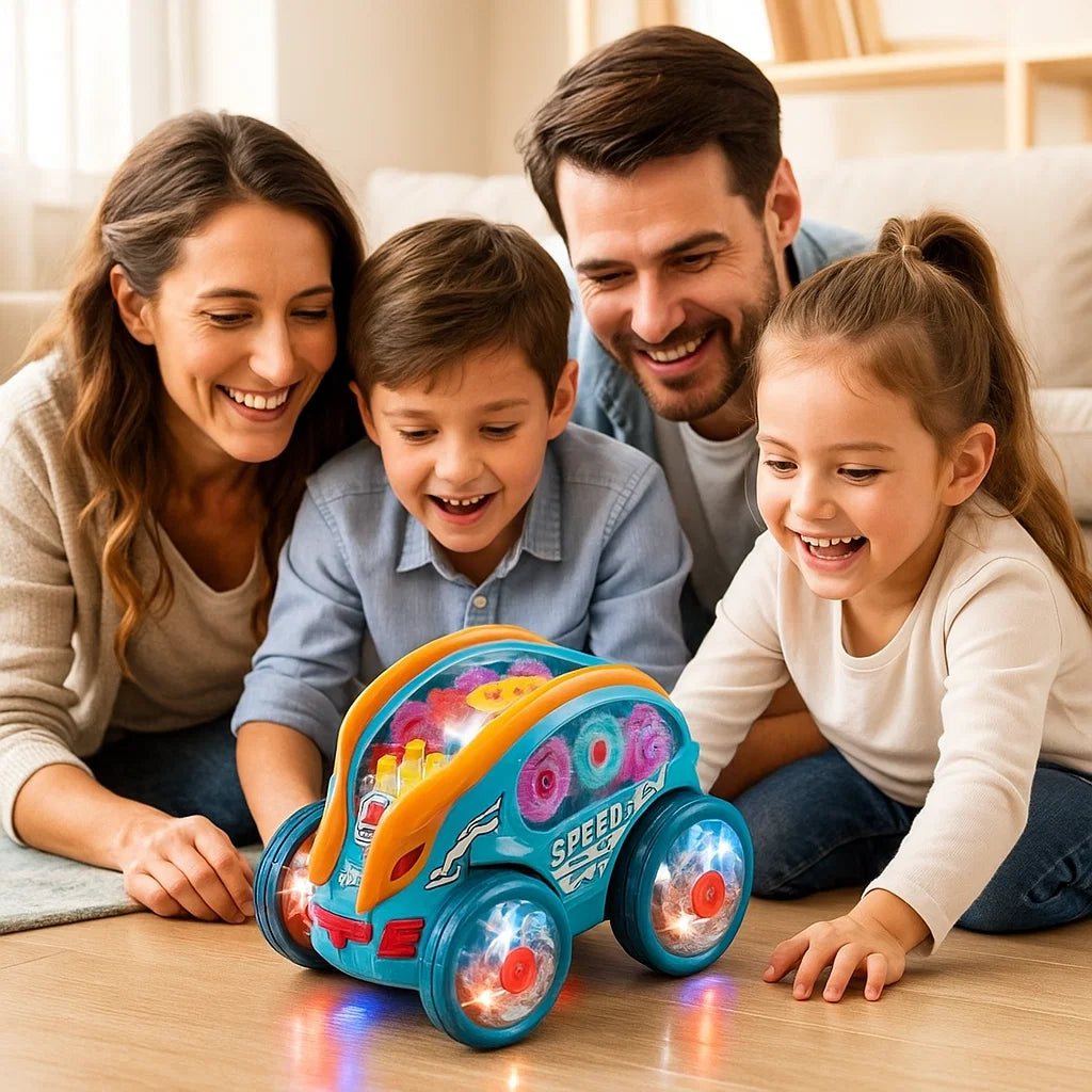 The glowing somersault car brings bright smiles and exciting play moments! With its flashing lights, fast spins, and spectacular flips, it turns any room into a mini racetrack. This energy-packed toy fascinates children with movement, color, and surprise effects – perfect for boosting imagination and reaction skills.