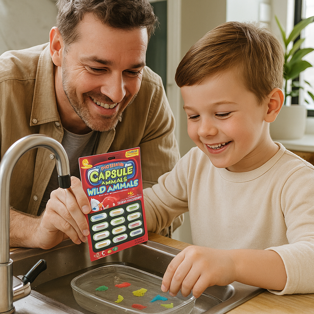 These animal capsules make every moment special: simply place them in water, watch, and enjoy the surprise. Within minutes, colorful little figures emerge, inviting kids to play and explore.