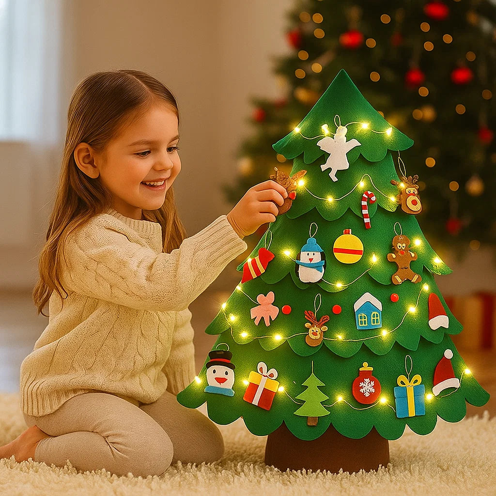 "The Montessori 3D felt Christmas tree is a great craft activity for children and encourages their creativity. The included LED fairy lights are particularly practical, giving the tree a festive and cosy atmosphere."